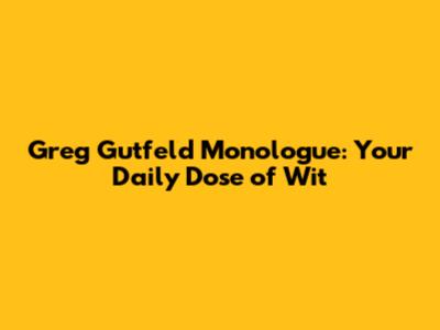 Greg Gutfeld Monologue: Your Daily Dose Of Wit