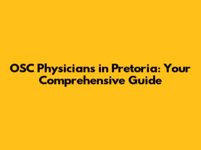 OSC Physicians In Pretoria: Your Comprehensive Guide